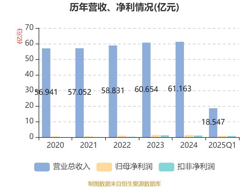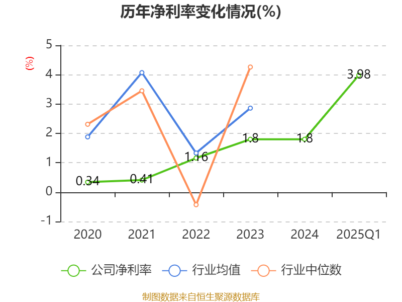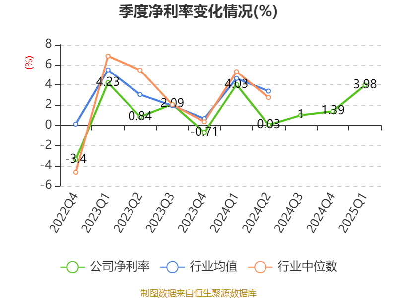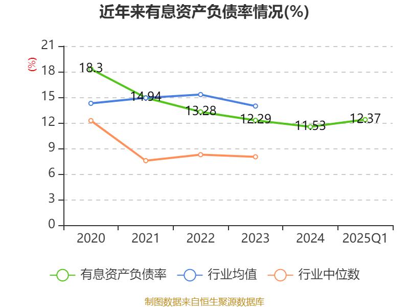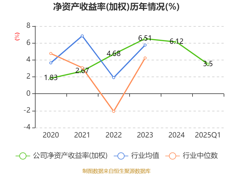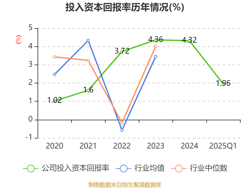 盈利能力方面, 2025年一季度公司加权平均净资产收益率为3.5%,同比下降0.22个百分点。公司2025年第一季度投入资本回报率为1.96%,较上年同期下降0.02个百分点。