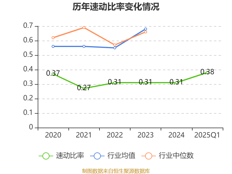 2025年第一季度,公司流动比率为0.56,速动比率为0.38。