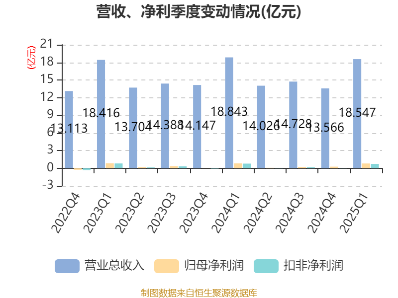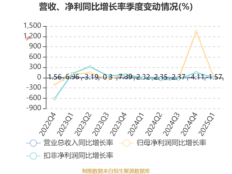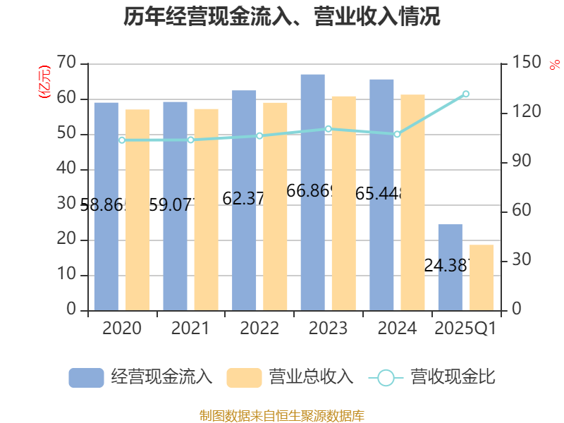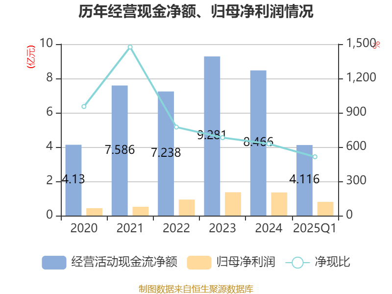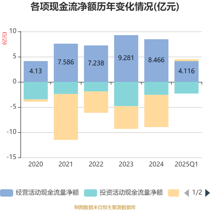 截至2025年一季度末股粮网,公司经营活动现金流净额为4.12亿元,同比增长96.38%;筹资活动现金流净额3796.01万元,同比增加1.24亿元;投资活动现金流净额-2.31亿元,上年同期为-1.69亿元。