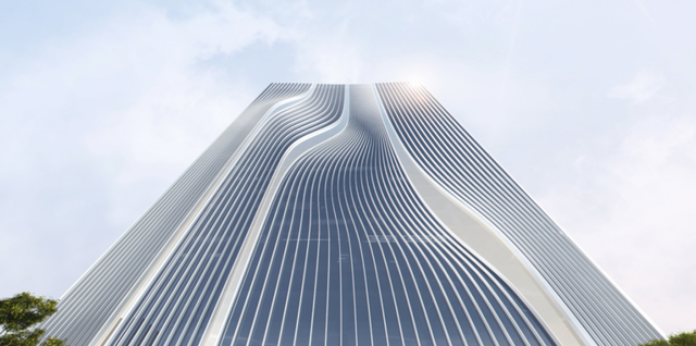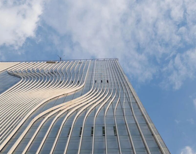 四栋150米高的塔楼虽高度一致,却在形态上富于变化,立面线条如行云流水,暗合珠江波痕,整体造型呼应木棉花开之姿,亦隐含篆书“羊”字意象,象征“打开羊城之门”。